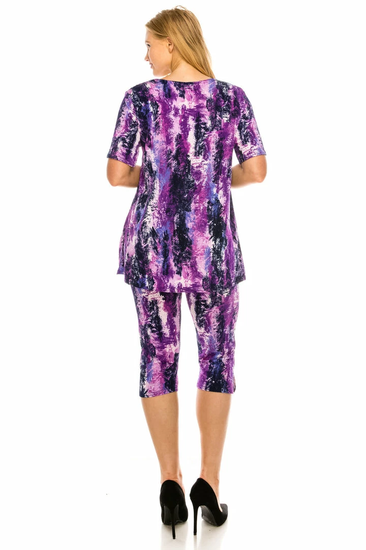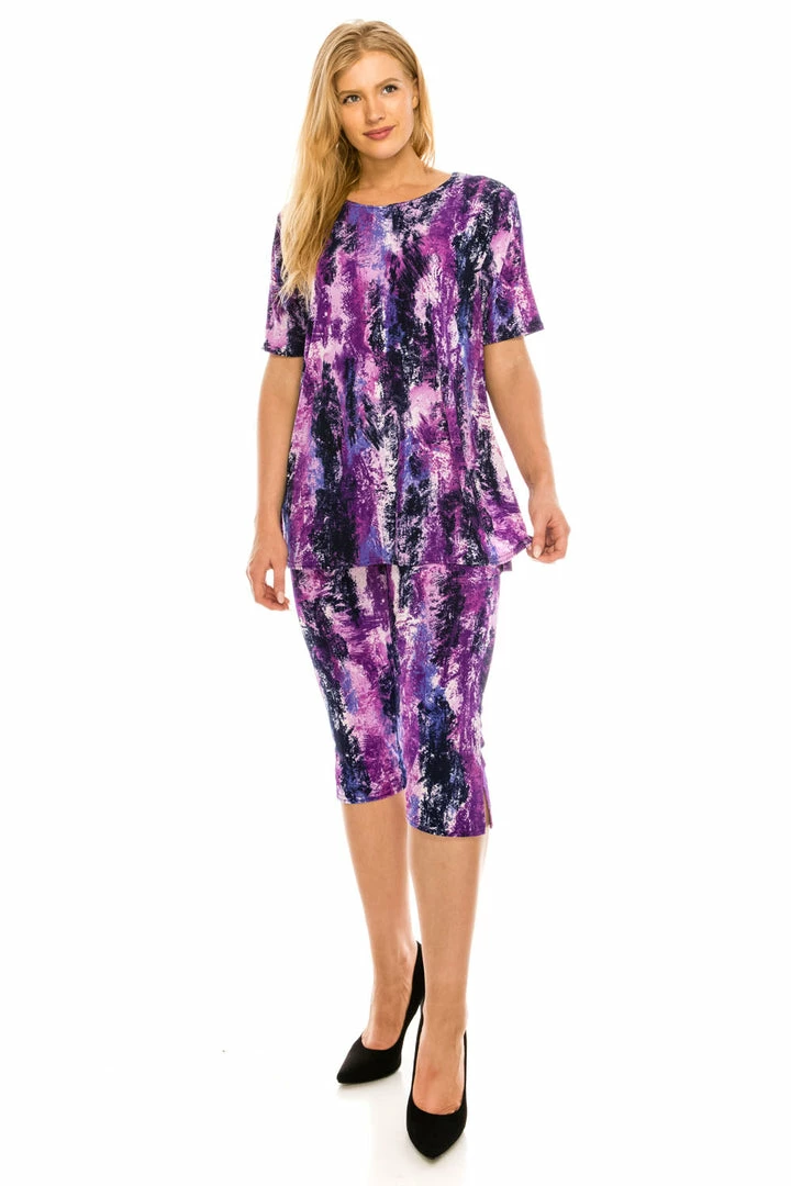 Jostar Women’s Stretchy Capri Pants Set Short Sleeve Plus Print, 903BN-SXP-W170