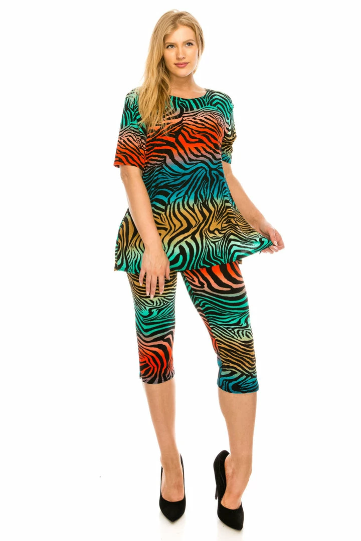 Jostar Women’s Stretchy Capri Pants Set Short Sleeve Plus Print, 903BN-SXP-W171 Pant Sets