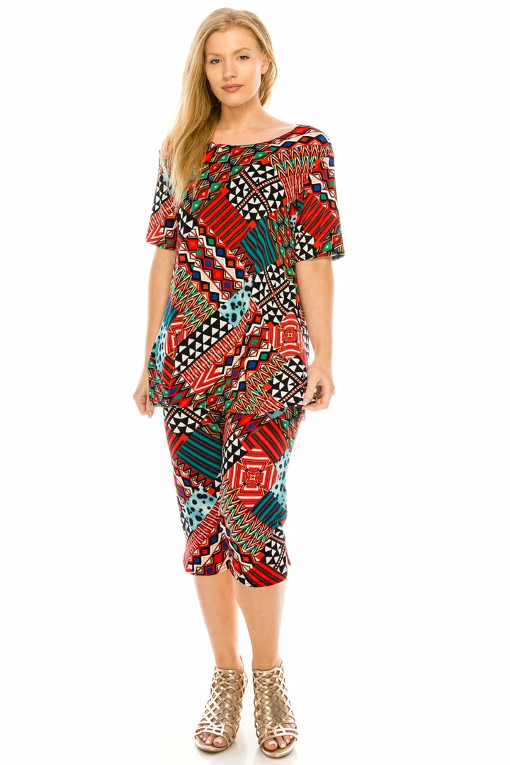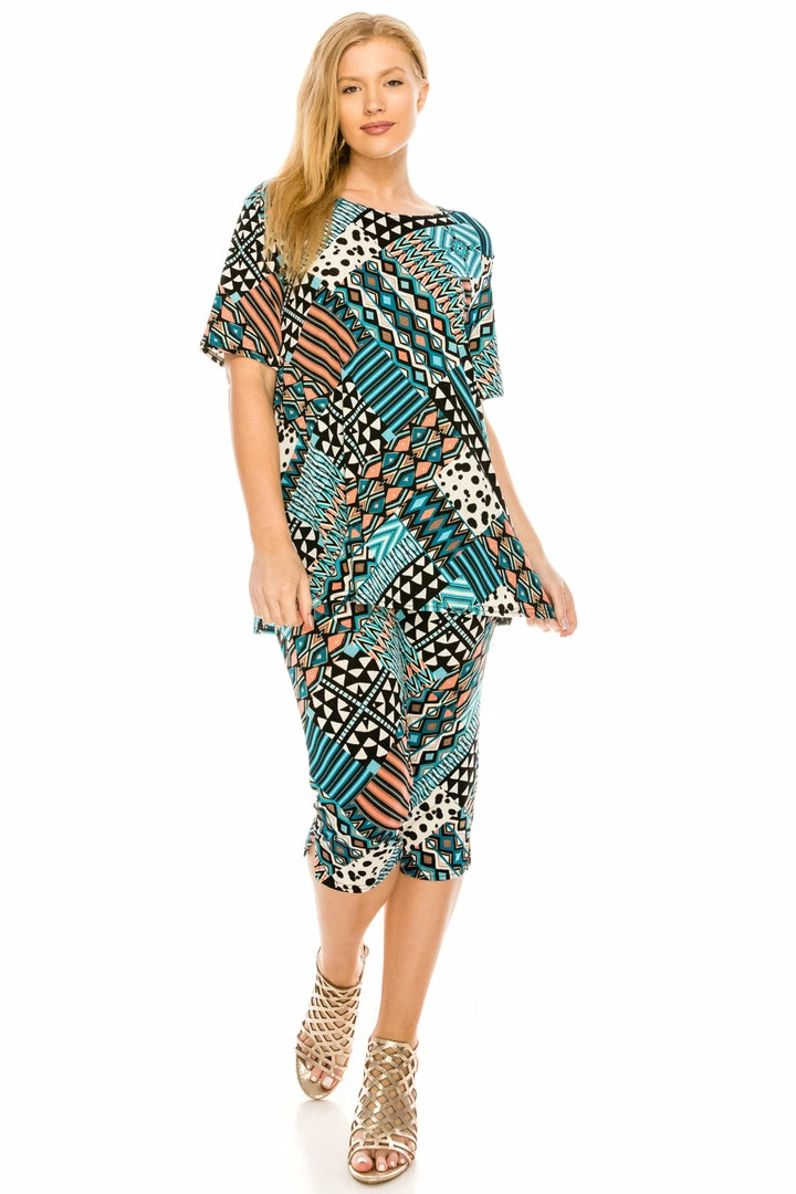 Jostar Women’s Stretchy Capri Pants Set Short Sleeve Plus Print, 903BN-SXP-W190