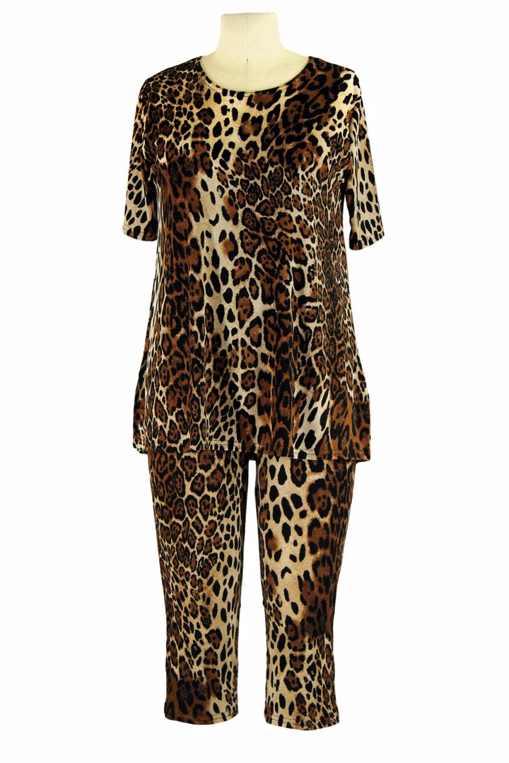 Jostar Women’s Stretchy Capri Pants Set Short Sleeve Plus Print, 903BN-SXP-W757