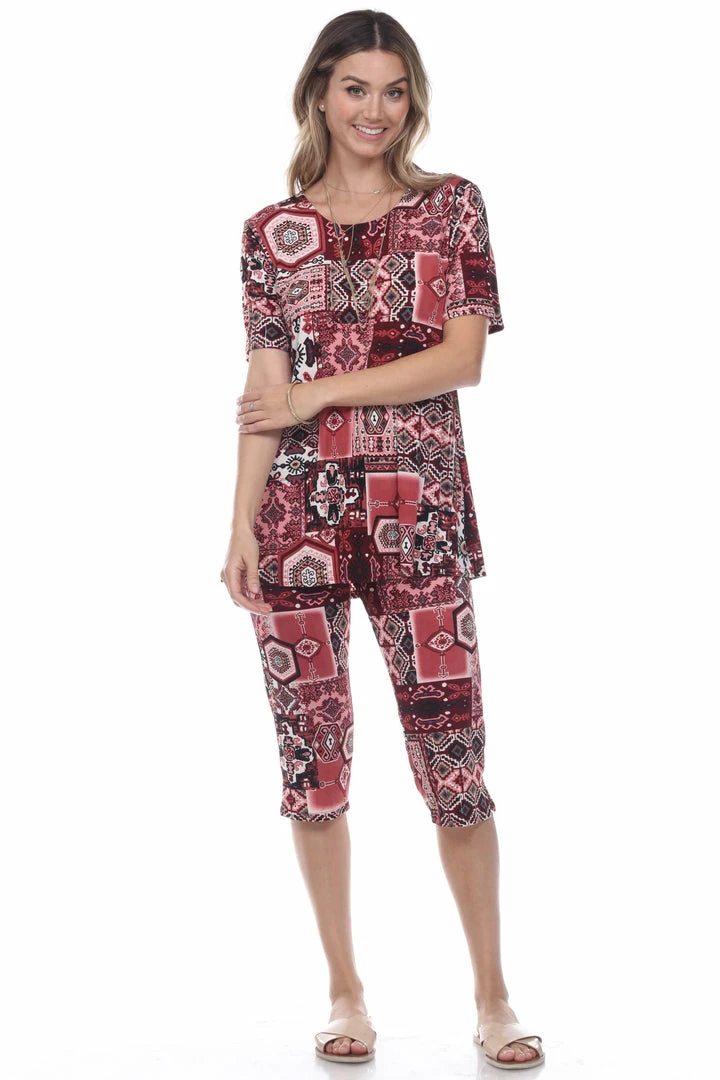 Jostar Women’s Stretchy Capri Pants Set Short Sleeve Plus Print, 903BN-SXP1-W166
