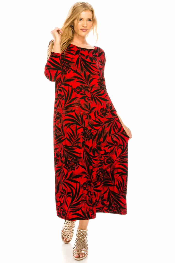 Jostar Women’s Stretchy Long Dress 3/4 Sleeve Print-702BN-QRP1-W173 Quarter Sleeves