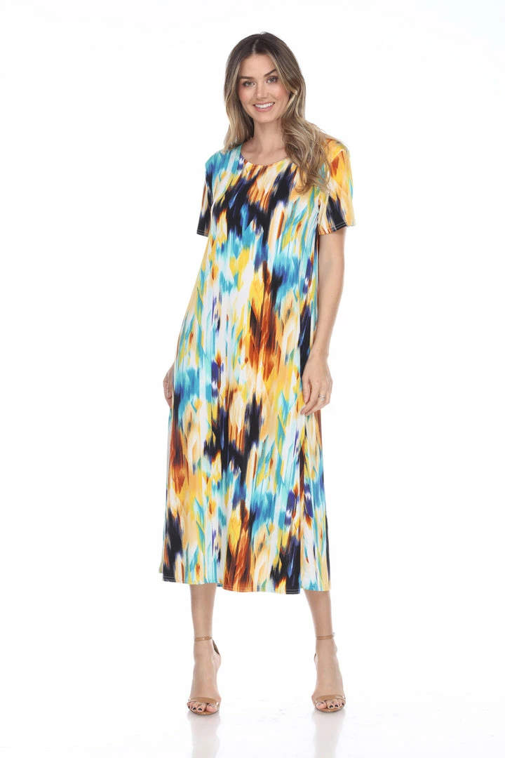 - Short sleeve and soft round-neckline long dress with a variety of prints available.Hand or machine wash in cold water.