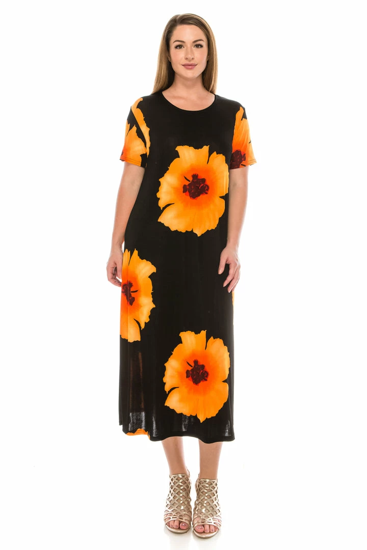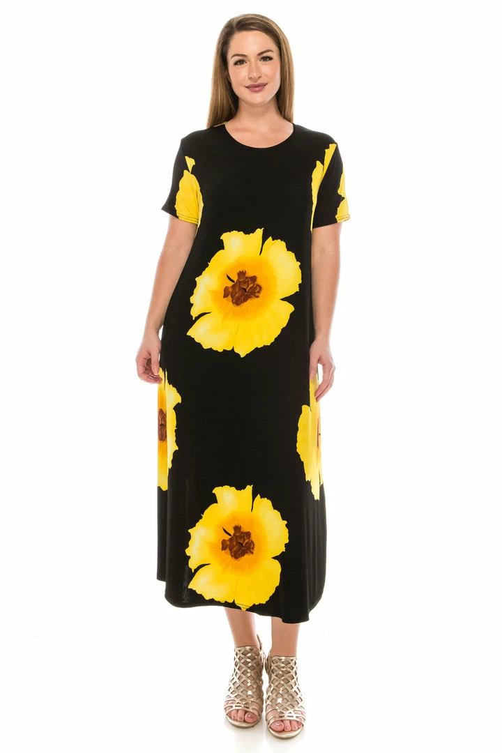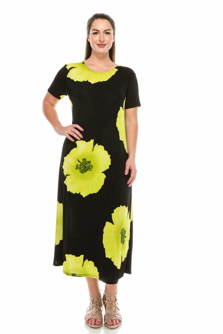 Jostar Women’s Stretchy Long Dress Short Sleeve Print-702BN-SRP1-W113