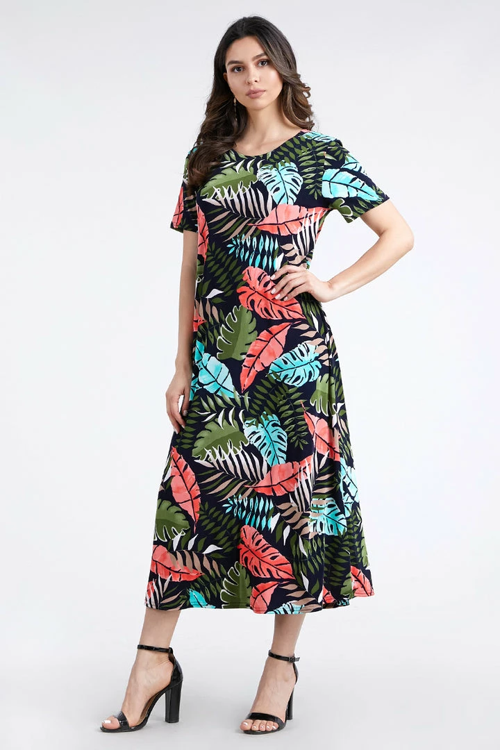 Jostar Women’s Stretchy Long Dress Short Sleeve Print-702BN-SRP1-W212