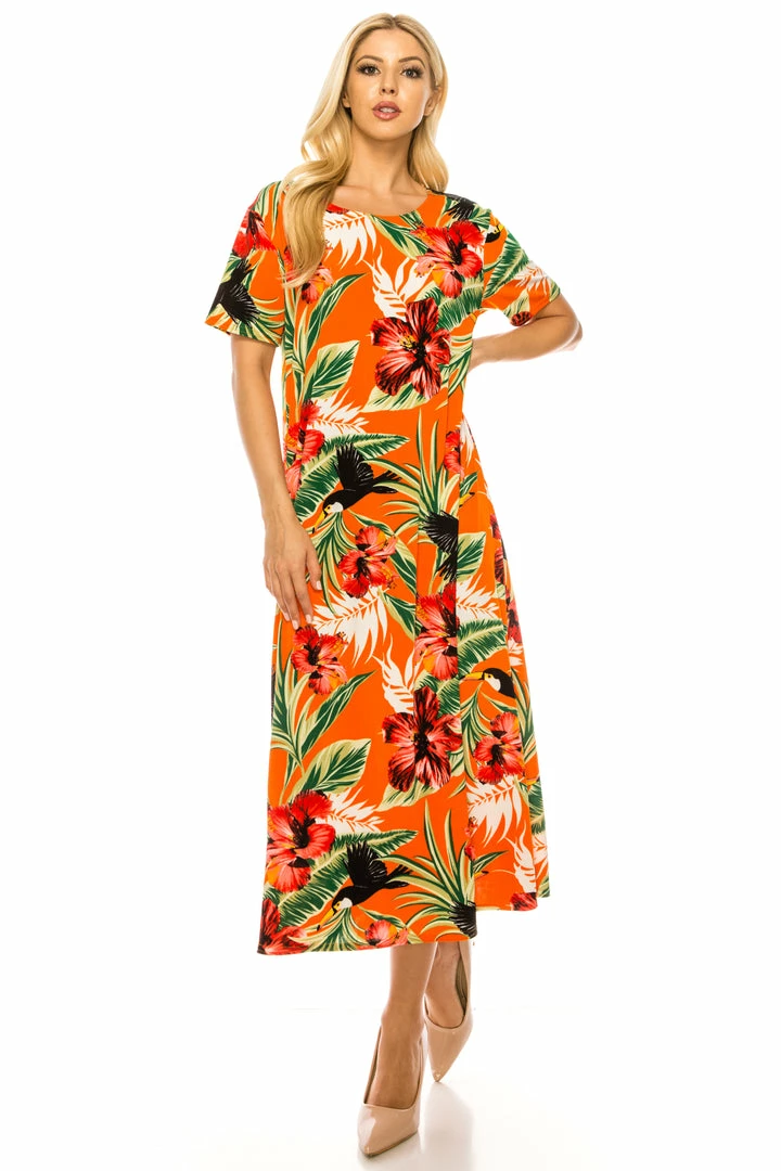 Jostar Women’s Stretchy Long Dress Short Sleeve Print, 702BN-SRP1-W320 Long Length