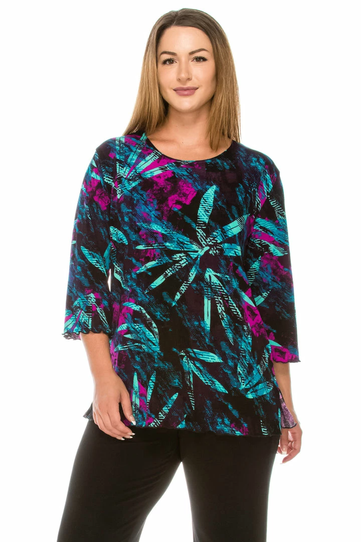 Jostar Women’s Stretchy Merrow Top 3/4 Sleeve Print Plus, 158BN-QXP-W101