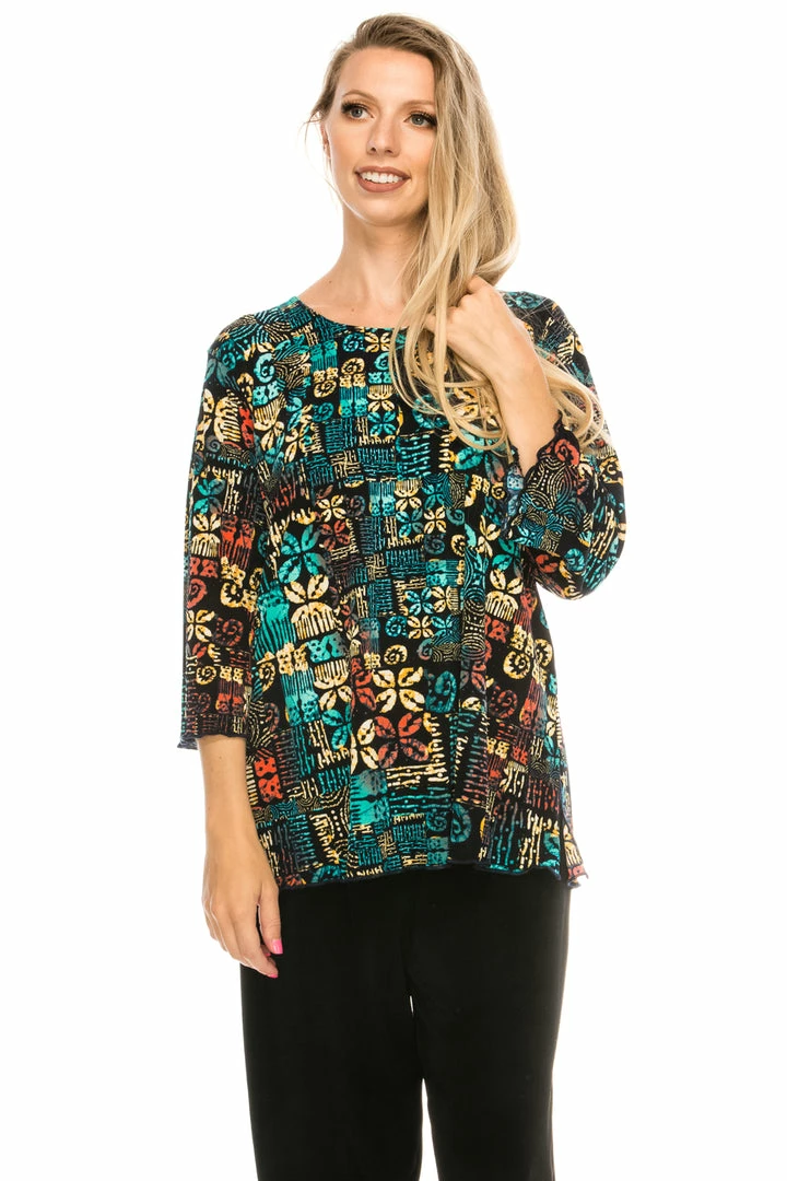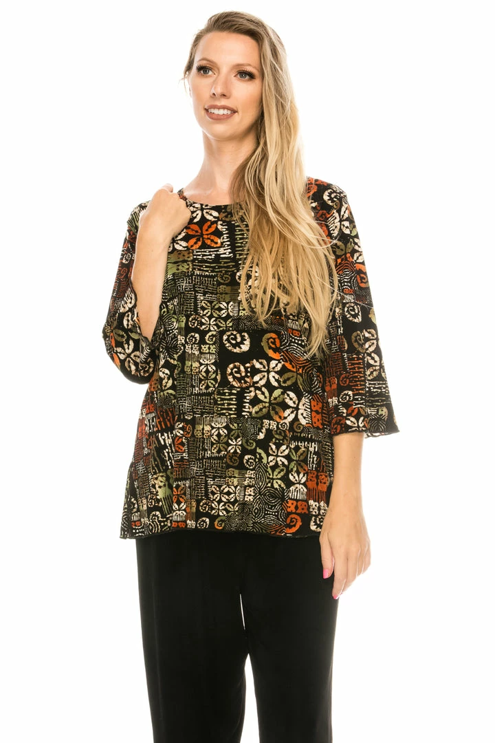 Jostar Women’s Stretchy Merrow Top 3/4 Sleeve Print Plus, 158BN-QXP-W167