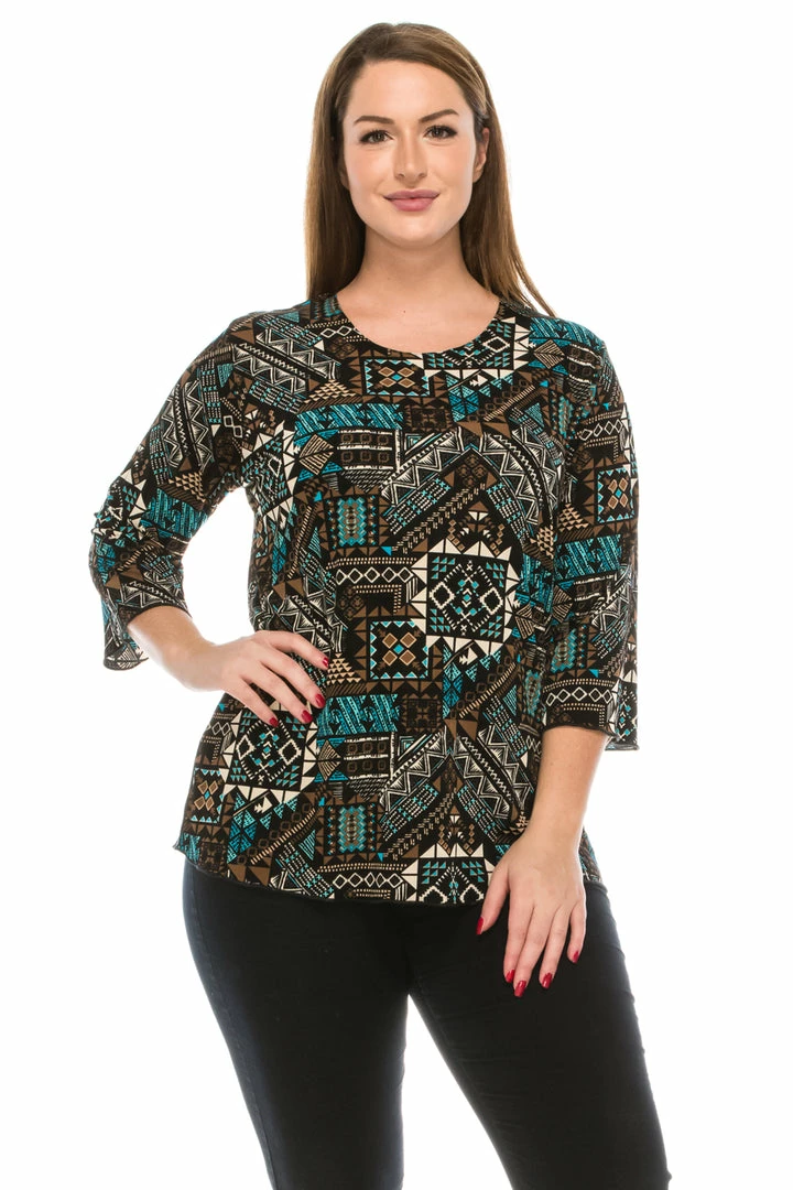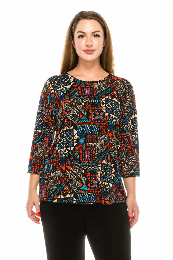 Jostar Women’s Stretchy Merrow Top Three Quarter Print-158BN-QRP1-W070 Quarter Sleeves