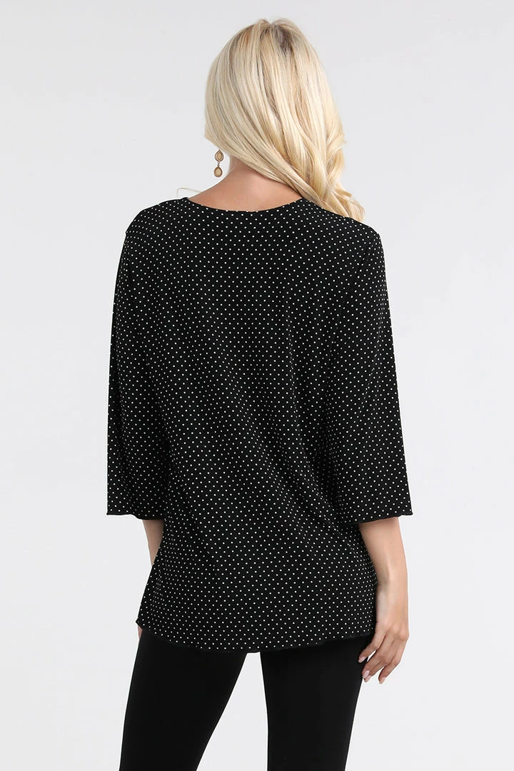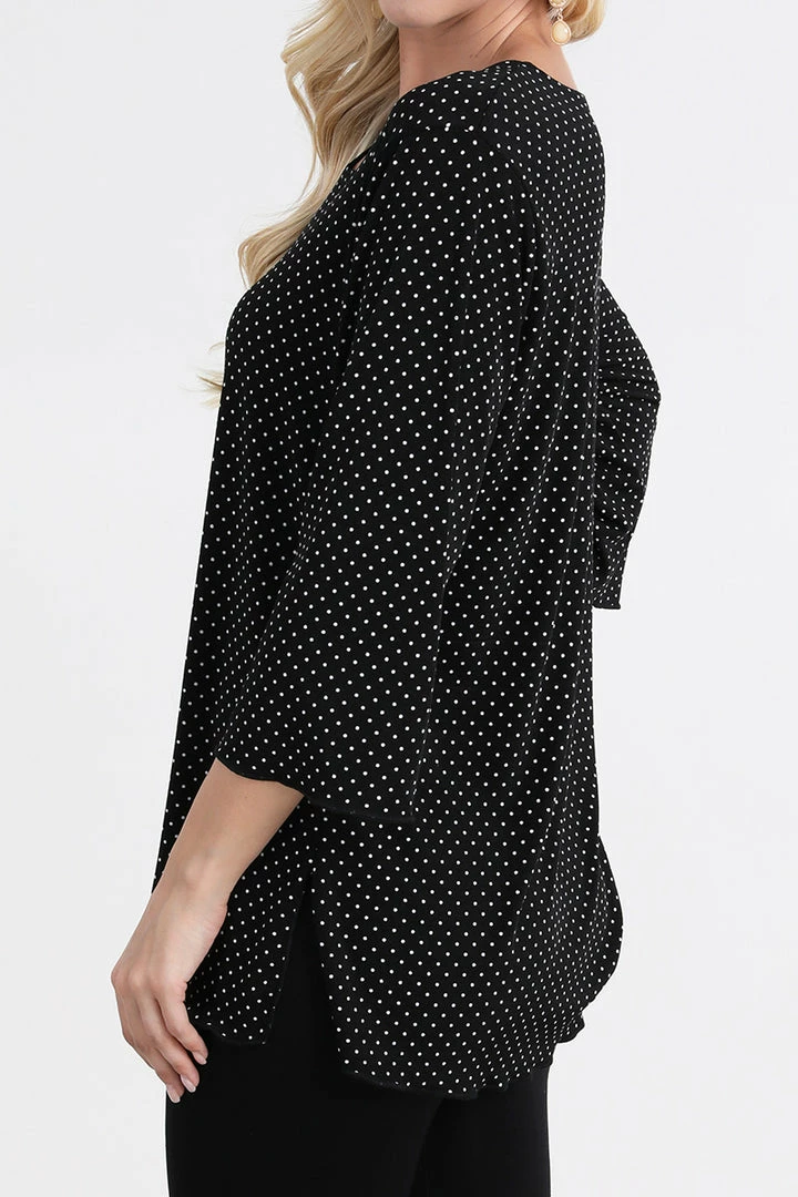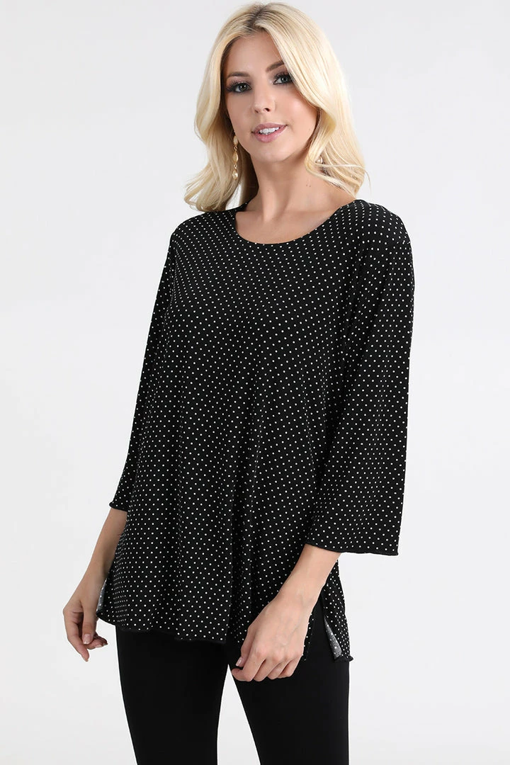 - 3/4 sleeves and soft round-neckline with Merrow bottom.