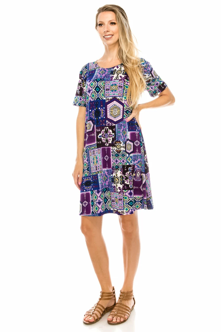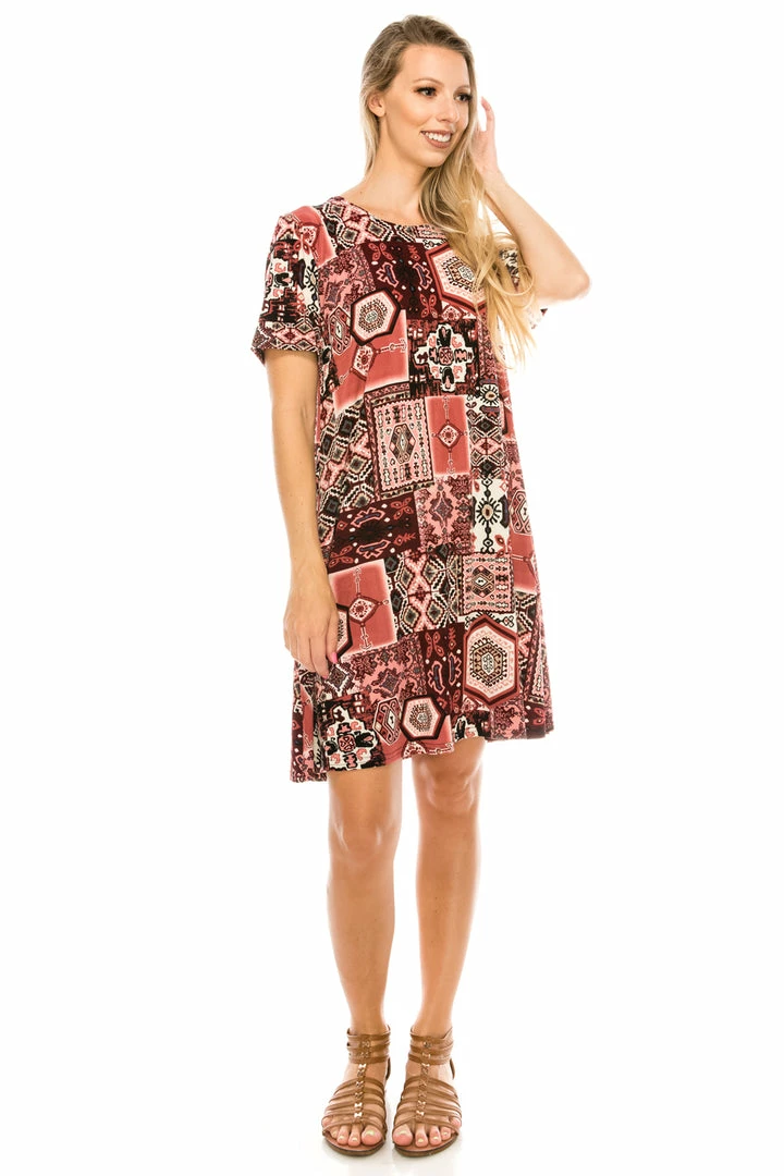 Jostar Women’s Stretchy Missy Dress Short Sleeve Print-704BN-SRP1-W166 Short Length