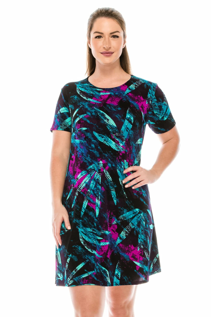 Jostar Women’s Stretchy Missy Dress Short Sleeve Print Plus, 704BN-SXP-W101