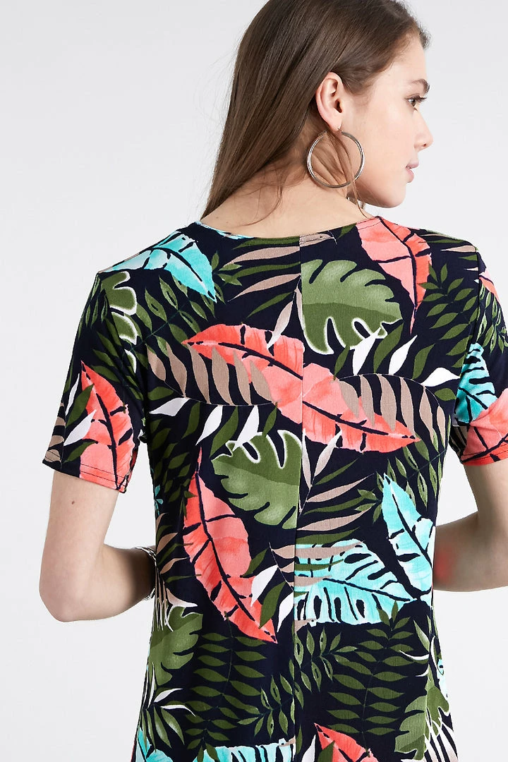- Short sleeve and soft round-neckline short dress and 37 inches in length.