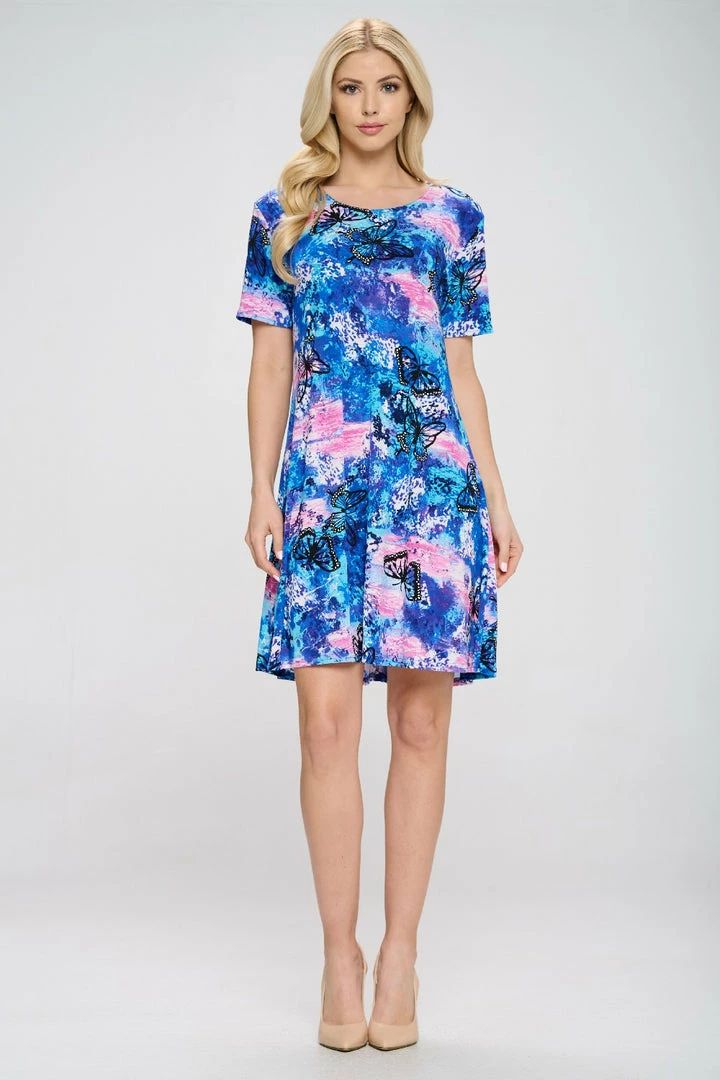 - Short sleeve and soft round-neckline short dress and 37 inches in length.