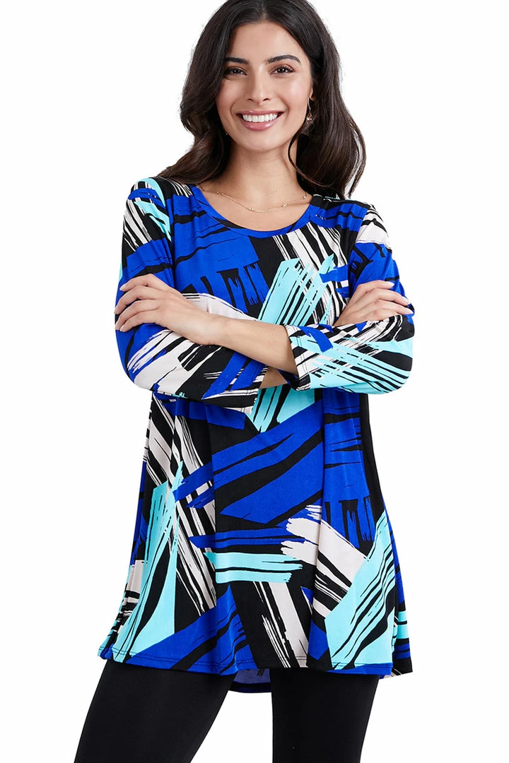 Jostar Women’s Stretchy Round Nk Band Tunic Top Quarter Sleeve Print, 345BN-QXP-W037 Tops