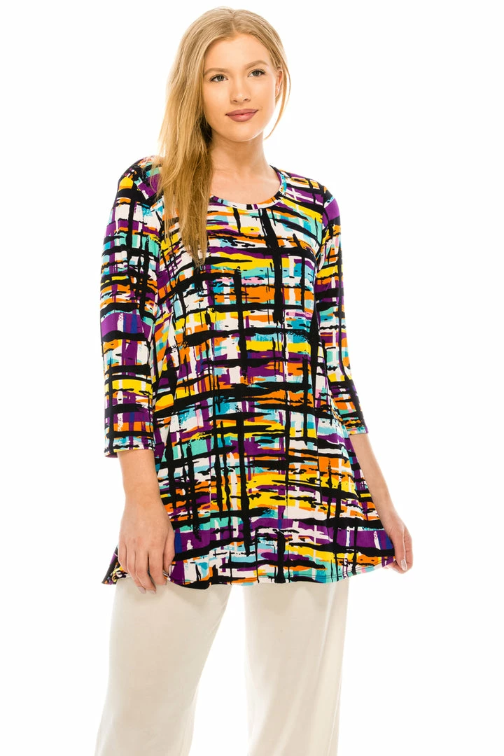 Jostar Women’s Stretchy Round Nk Band Tunic Top Quarter Sleeve Print, 345BN-QXP-W198