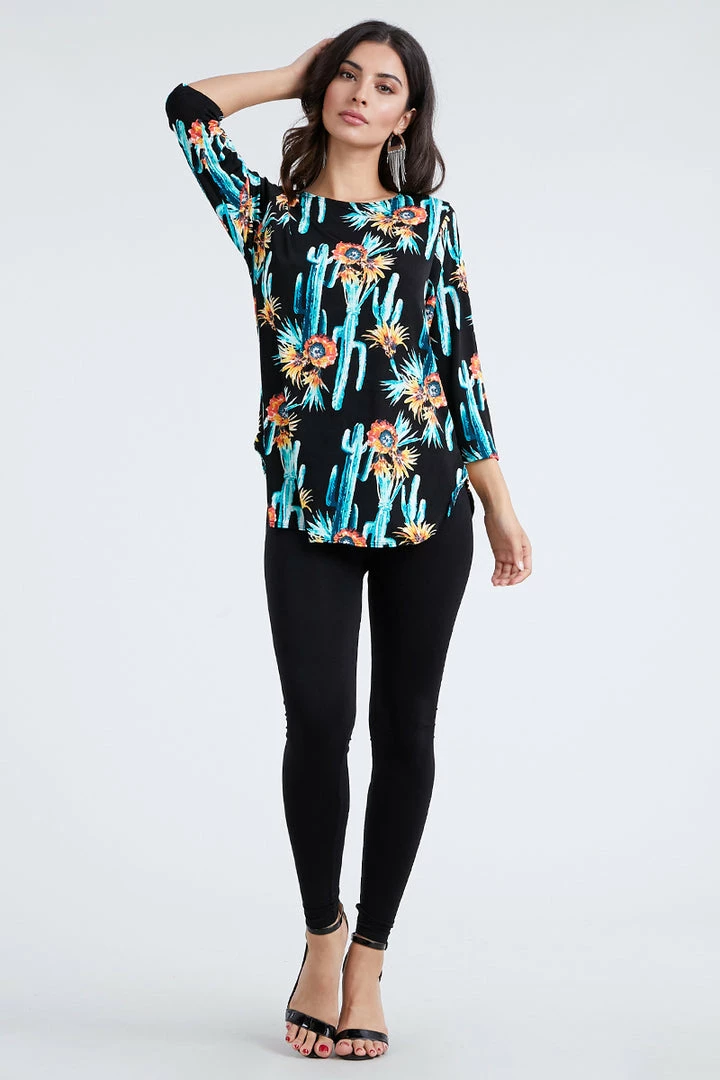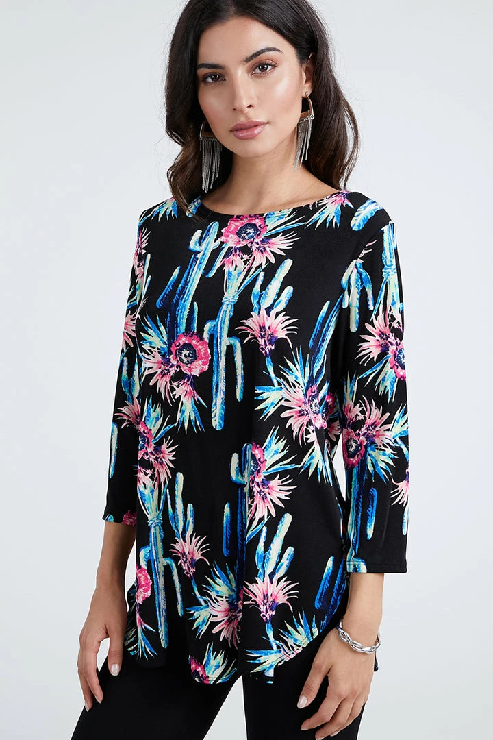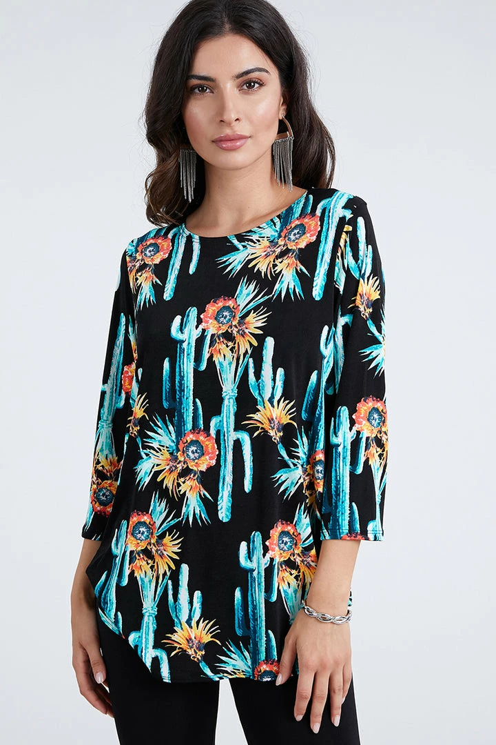 Jostar Women’s Stretchy Rounded Bottom Tunic Top Quarter Sleeve Print-346BN-QRP1-W039 Quarter Sleeves
