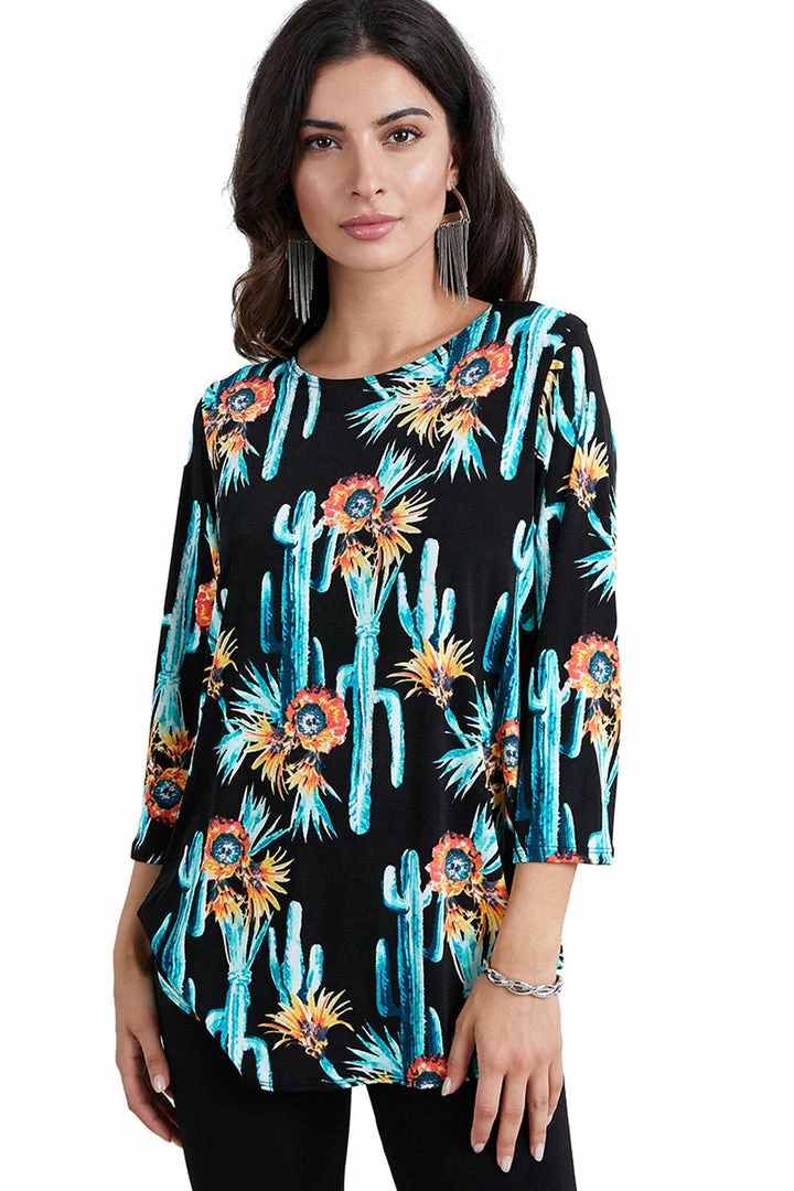 Jostar Women’s Stretchy Rounded Bottom Tunic Top Quarter Sleeve Print Plus, 346BN-QXP-W039