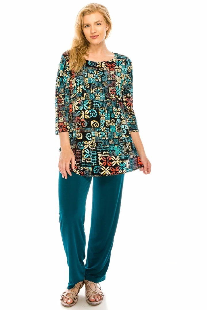 Jostar Women’s Stretchy Rounded Bottom Tunic TopQuarter Sleeve Print Plus, 346BN-QXP-W167 Tops