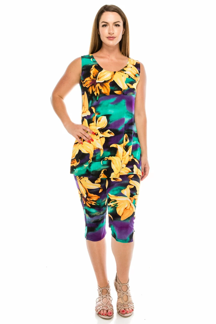 Jostar Women’s Stretchy Tank Capri Pant Set Print-902BN-TRP1-W139
