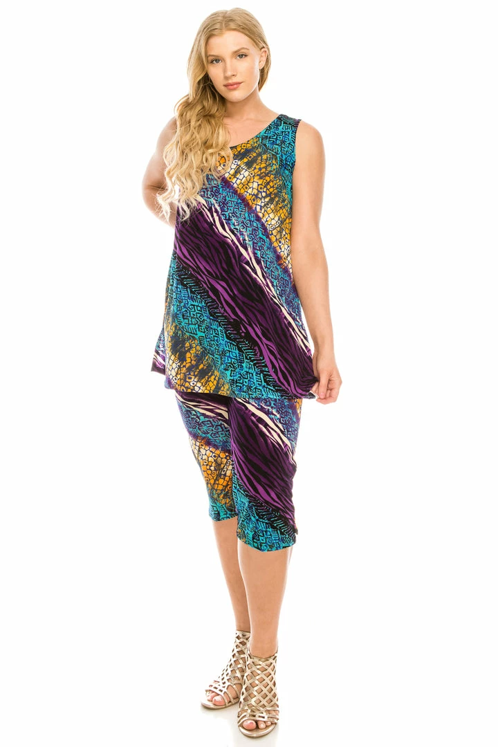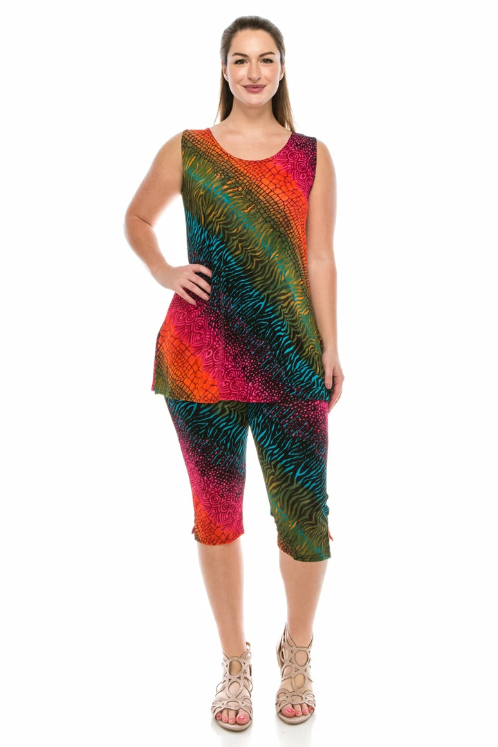 Jostar Women’s Stretchy Tank Capri Pant Set Print-902BN-TRP1-W182 Pant Sets