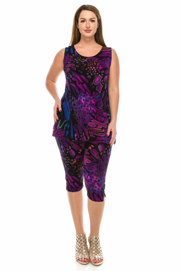 Jostar Women’s Stretchy Tank Capri Pant Set Print-902BN-TRP1-W207