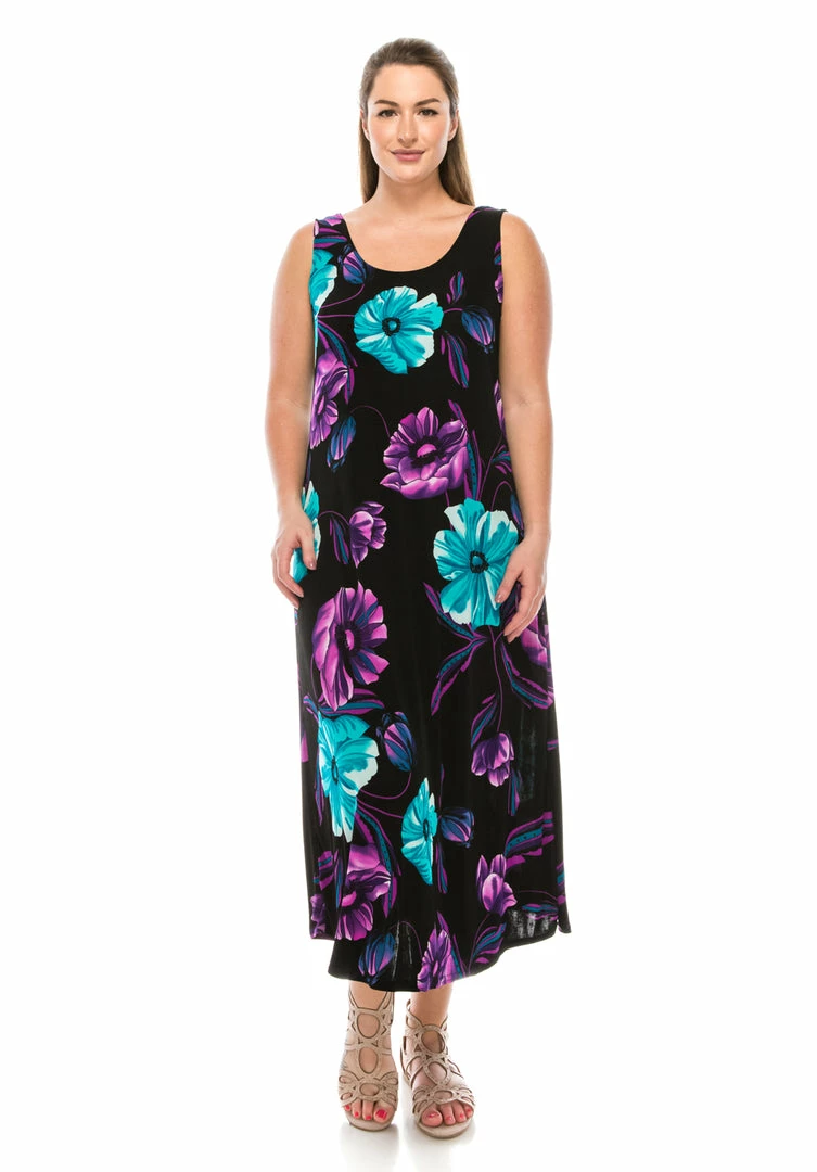 Jostar Women’s Stretchy Tank Long Dress Sleeveless Plus Print, 700BN-TXP-W099 Plus Size
