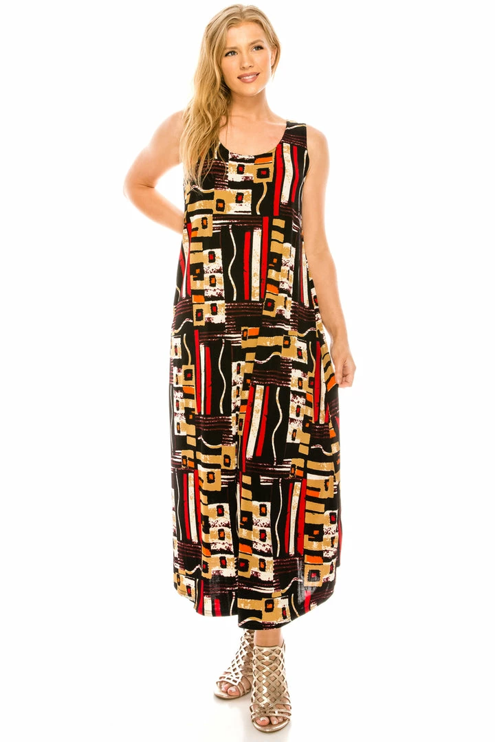 Jostar Women’s Stretchy Tank Long Dress Sleeveless Plus Print, 700BN-TXP-W186 Plus Size