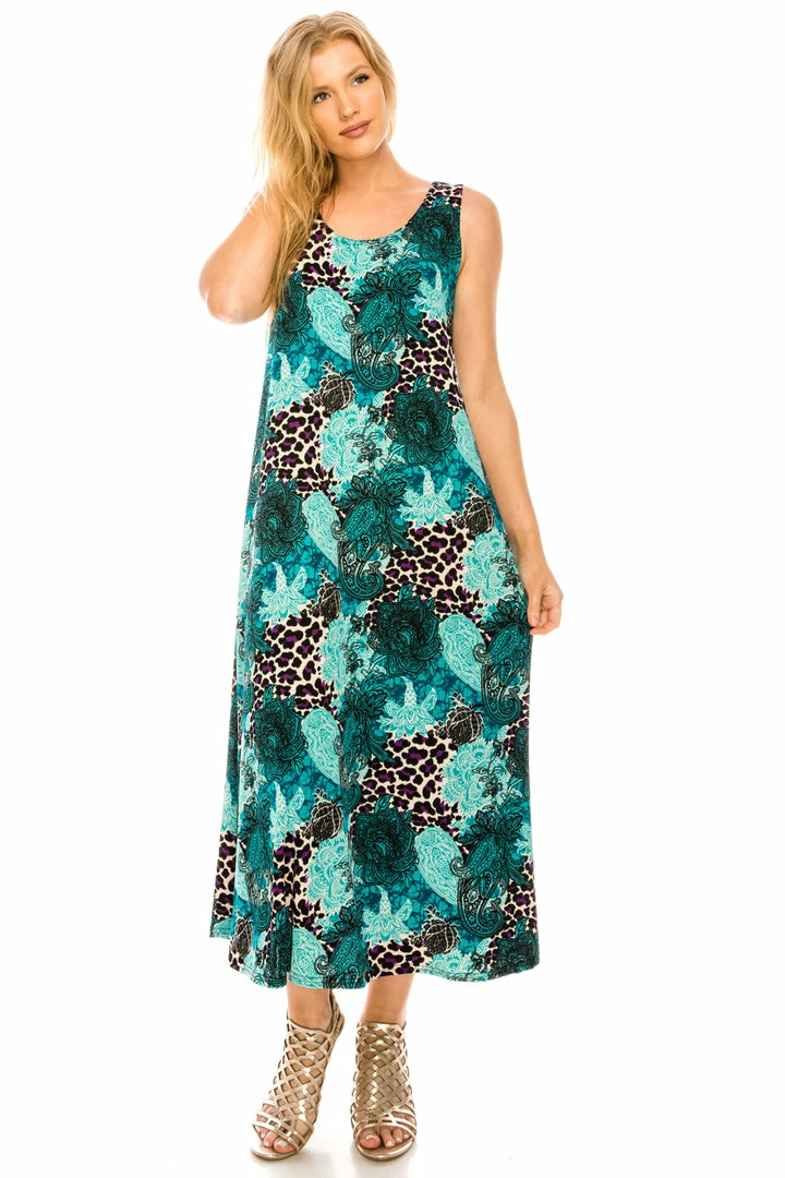 Jostar Women’s Stretchy Tank Long Dress Sleeveless Plus Print, 700BN-TXP-W188