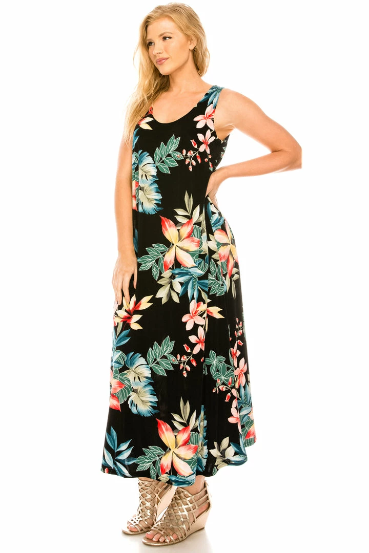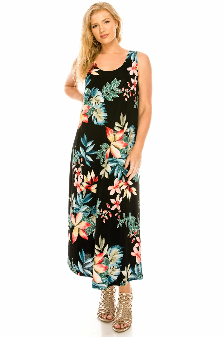 Jostar Women’s Stretchy Tank Long Dress Sleeveless Plus Print, 700BN-TXP-W189