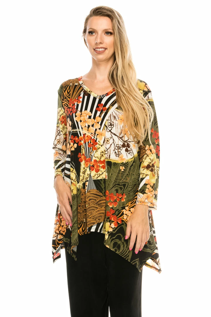 Jostar Women’s Stretchy V-Neck Binding Top 3/4 Sleeve Print-313BN-QRP1-W168 Quarter Sleeves