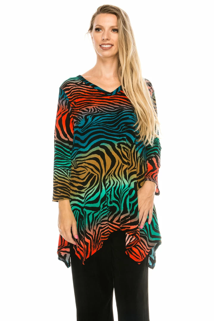 Jostar Women’s Stretchy V-Neck Binding Top 3/4 Sleeve Print-313BN-QRP1-W171 Tops