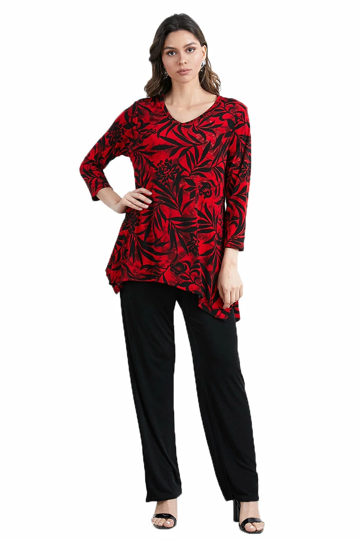 Jostar Women’s Stretchy V-Neck Binding Top 3/4 Sleeve Print-313BN-QRP1-W173 Quarter Sleeves