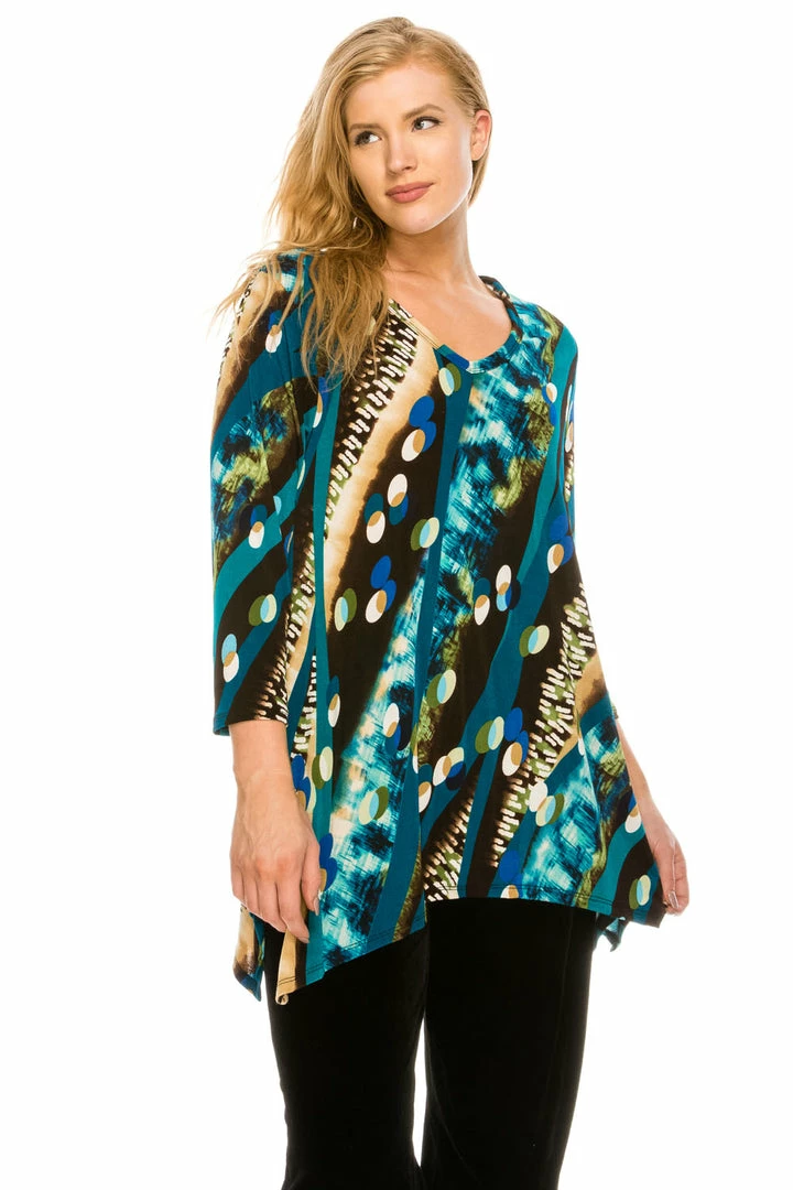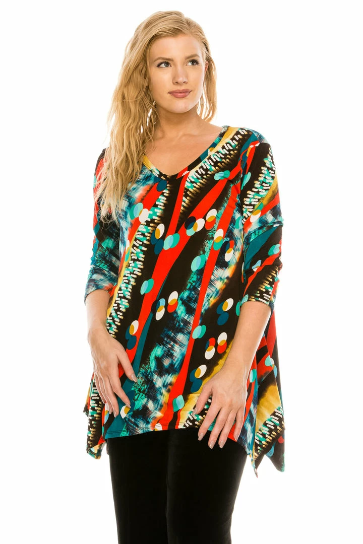 Jostar Women’s Stretchy V-Neck Binding Top 3/4 Sleeve Print-313BN-QRP1-W175