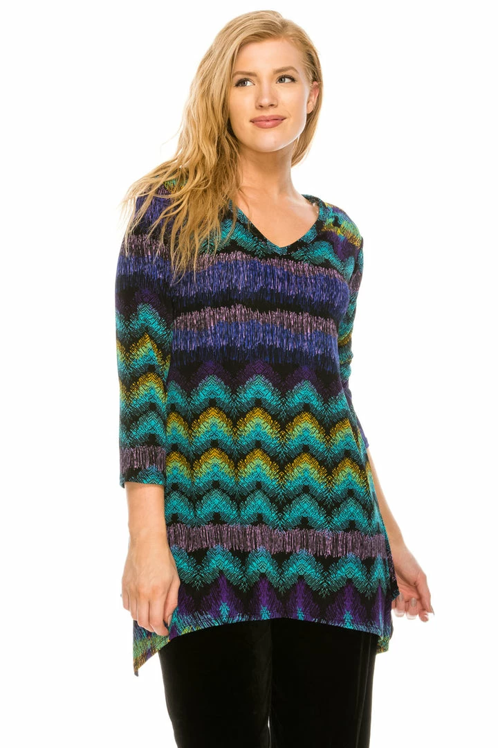 Jostar Women’s Stretchy V-Neck Binding Top 3/4 Sleeve Print-313BN-QRP1-W176