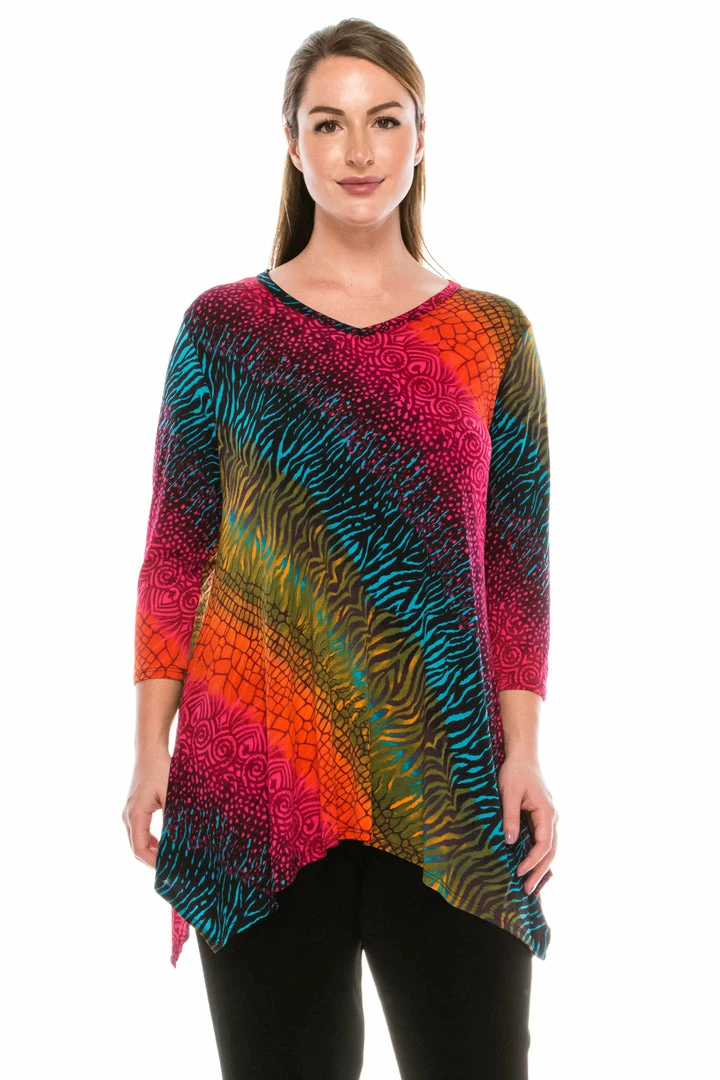 Jostar Women’s Stretchy V-Neck Binding Top 3/4 Sleeve Print-313BN-QRP1-W182