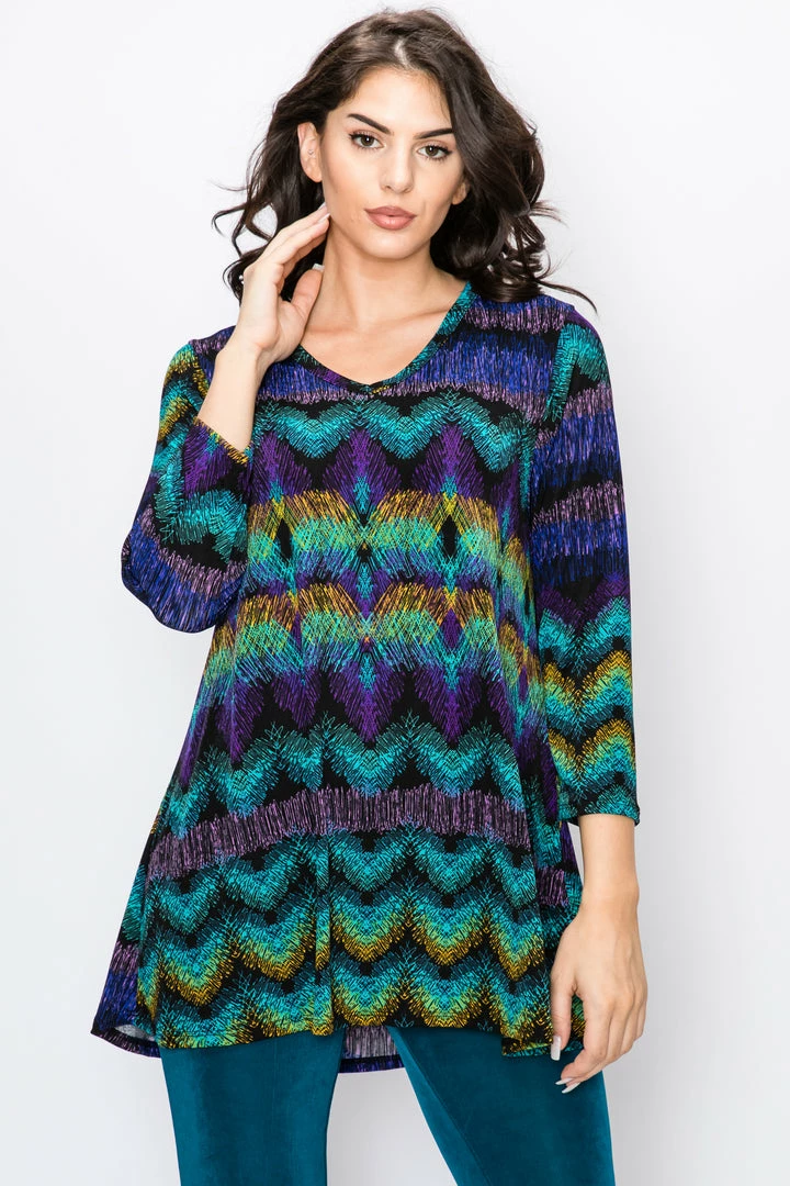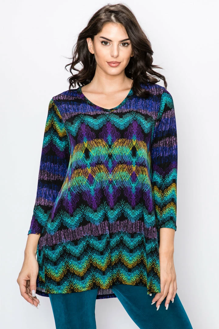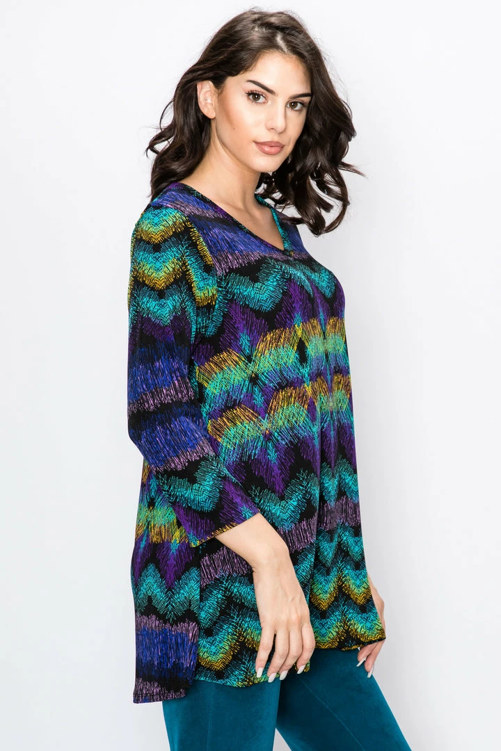 Jostar Women’s Stretchy V-Nk Binding Tunic Top Quarter Sleeve Print-347BN-QXP1-W176