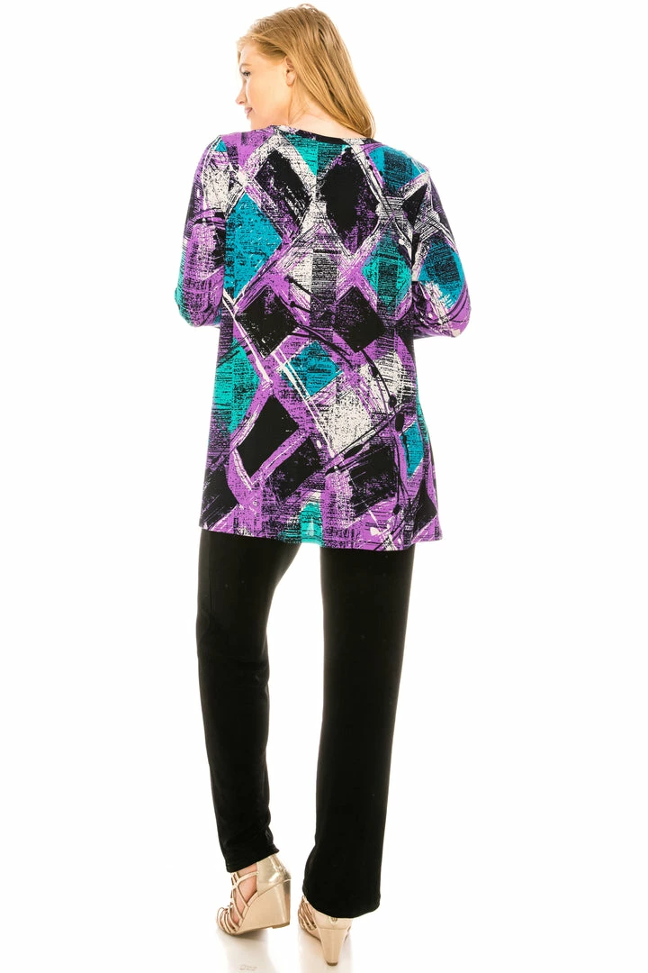 Jostar Women’s Stretchy V-Nk Binding Tunic Top Quarter Sleeve Print-347BN-QXP1-W180 Tops