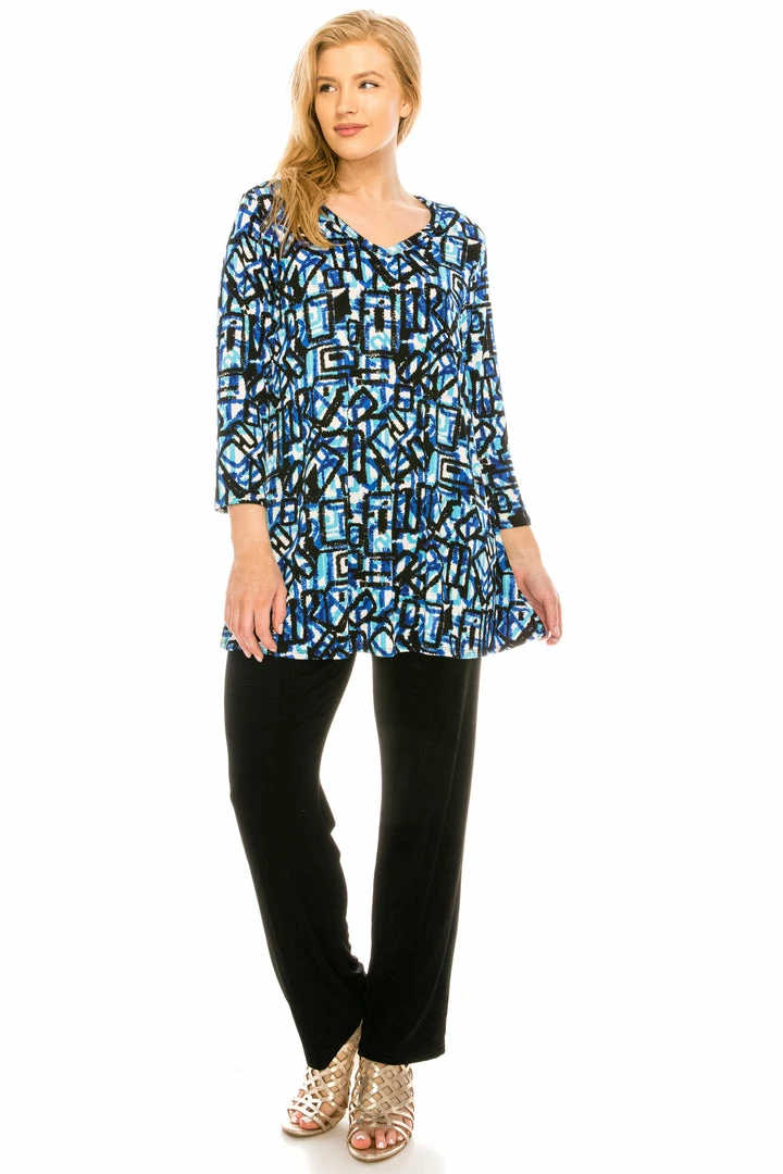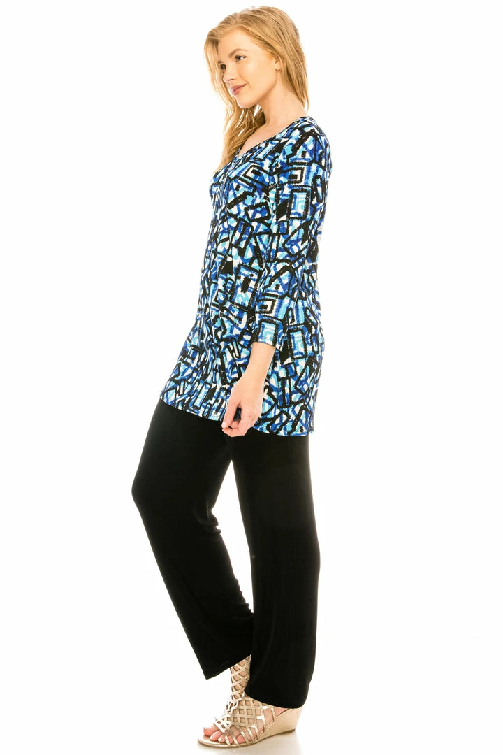 Jostar Women’s Stretchy V-Nk Binding Tunic Top Quarter Sleeve Print347BN-QXP1-W196