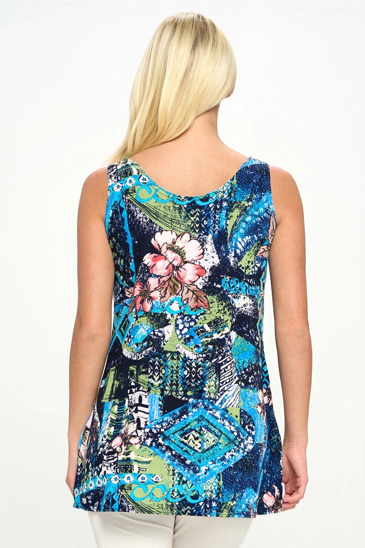 Jostar Women’s Stretchy Vented Tunic Tank Top Sleeveless Print, 241BN-TP-W316