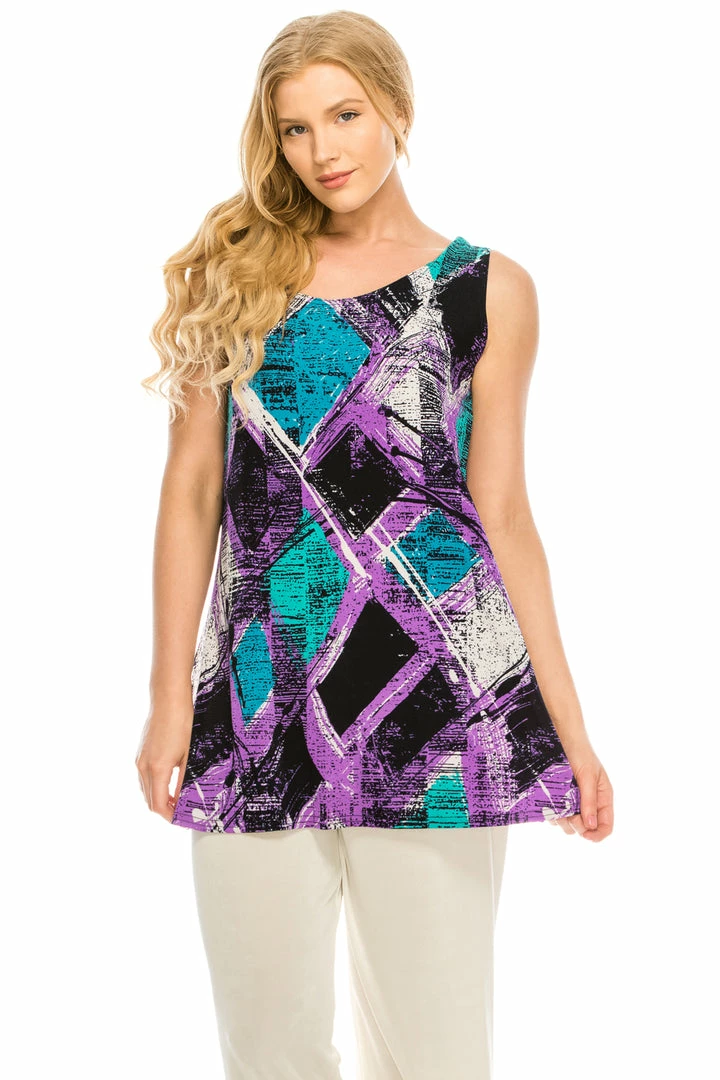 Jostar Women’s Stretchy Vented Tunic Tank Top Sleeveless Print-241BN-TRP1-W180