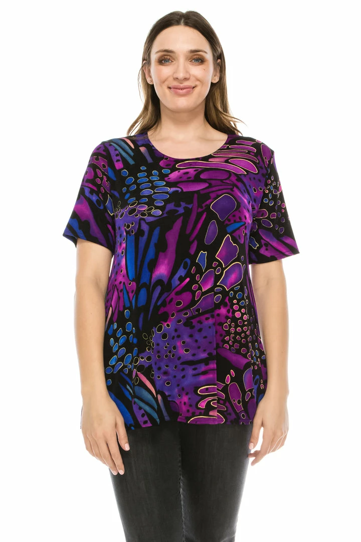 Jostar Women’s Stretchy Vented Tunic Top Short Sleeve Plus, 242BN-SXP-W207