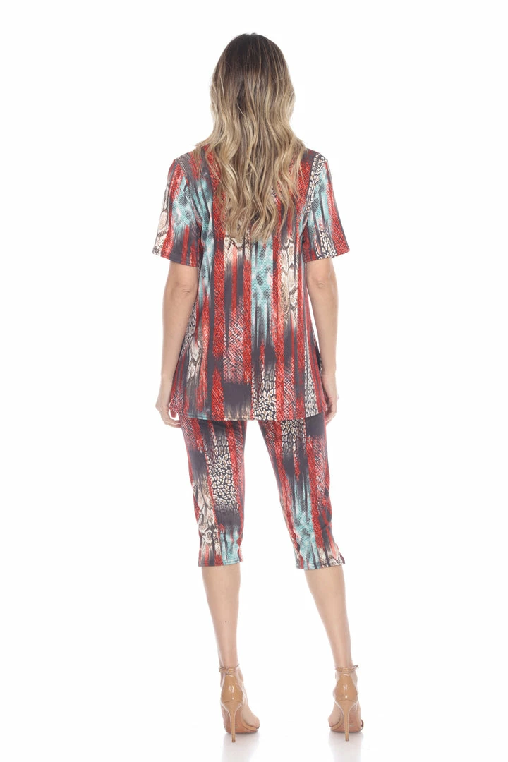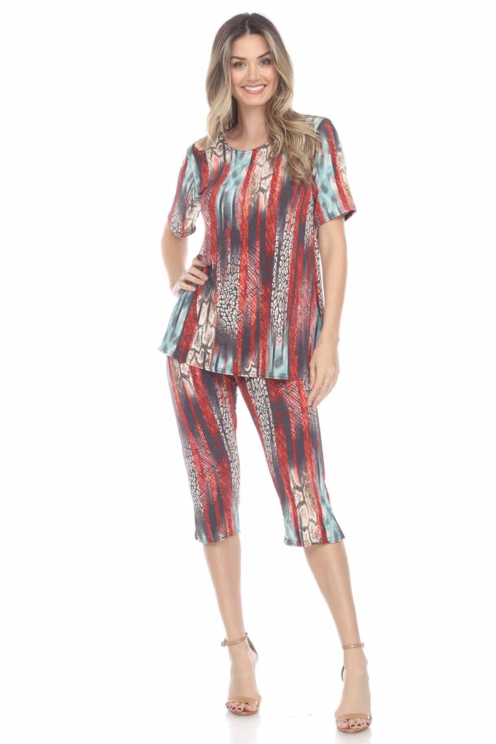 Pant Sets Jostar Women’s Stretchy Capri Pant Set Short Sleeve Print-903BN-SRP1-W249