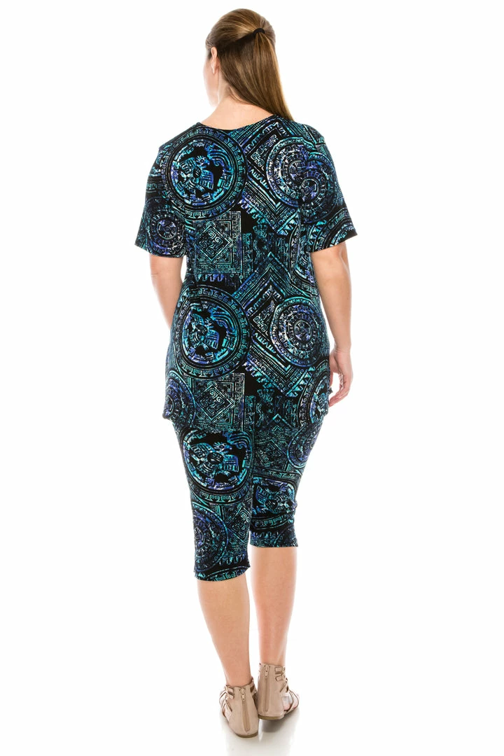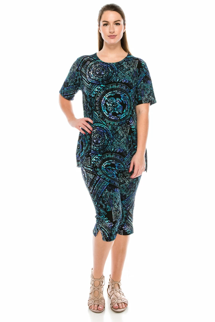Pant Sets Jostar Women’s Stretchy Capri Pants Set Short Sleeve Plus Print, 903BN-SXP-W014