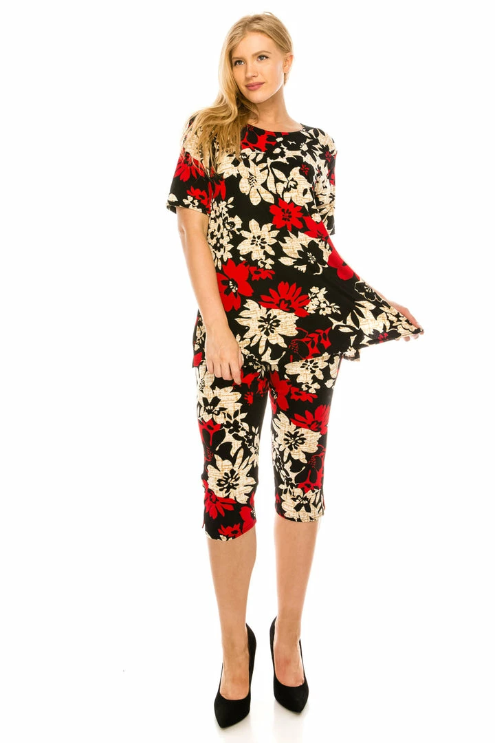 Pant Sets Jostar Women’s Stretchy Capri Pants Set Short Sleeve Plus Print, 903BN-SXP-W161