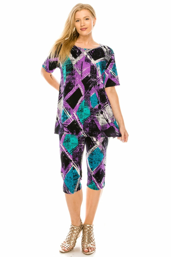 Pant Sets Jostar Women’s Stretchy Capri Pants Set Short Sleeve Plus Print, 903BN-SXP-W180