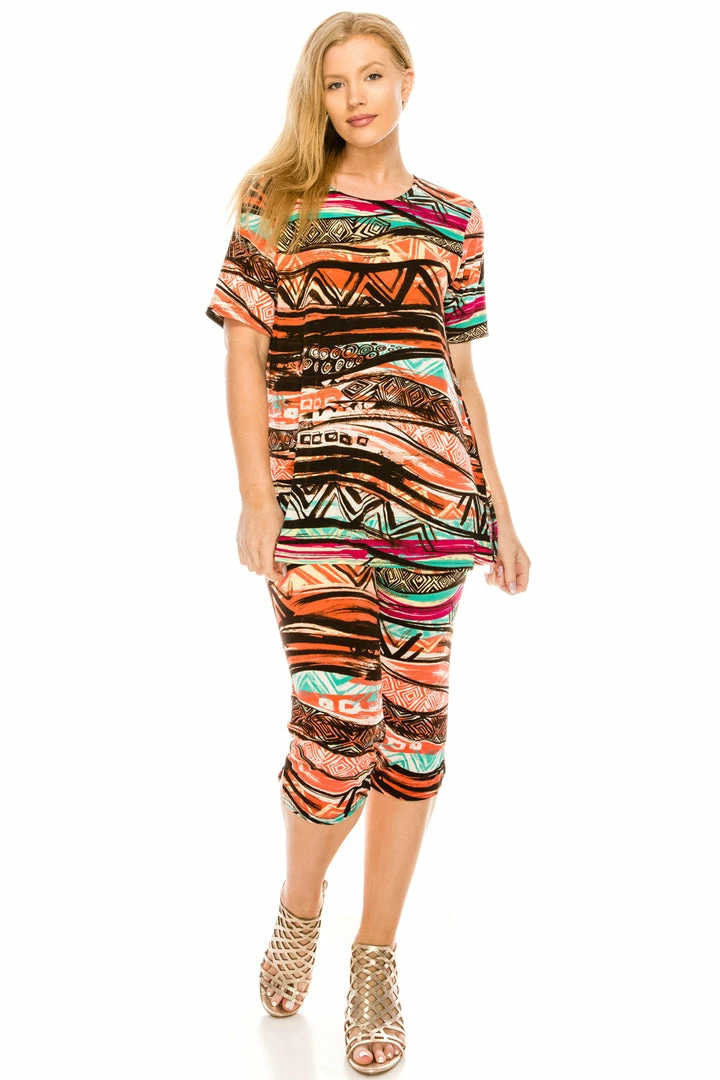 Pant Sets Jostar Women’s Stretchy Capri Pants Set Short Sleeve Plus Print, 903BN-SXP-W194