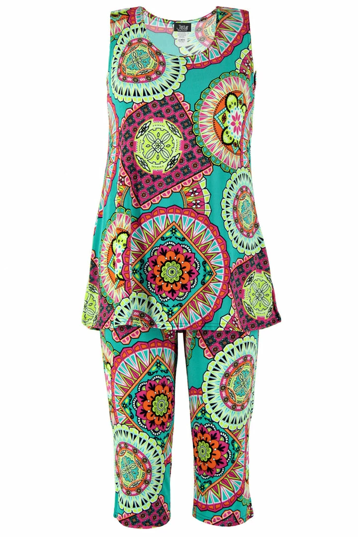 Pant Sets Jostar Women’s Stretchy Tank Capri Set Sleeveless Plus Print, 902BN-TXP-W031