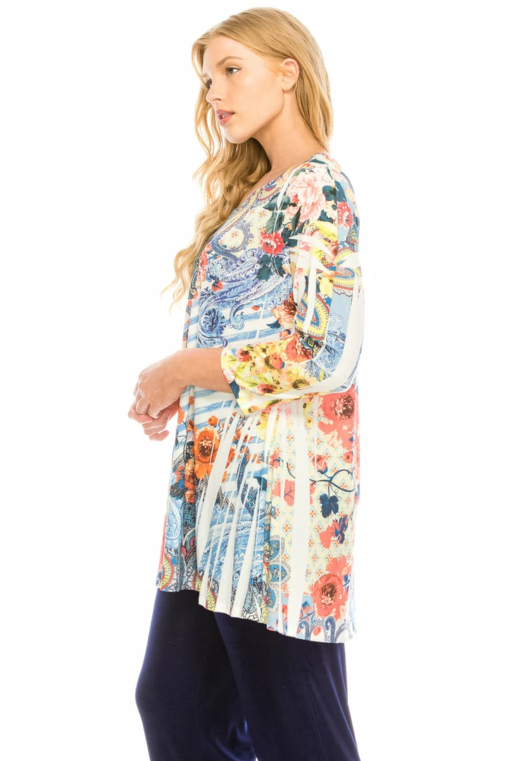 Plus Size Jostar Women’s HIT V-Nk Binding Tunic Top Quarter Sleeve Sublimation Plus, 347HT-QXU1-R-U179