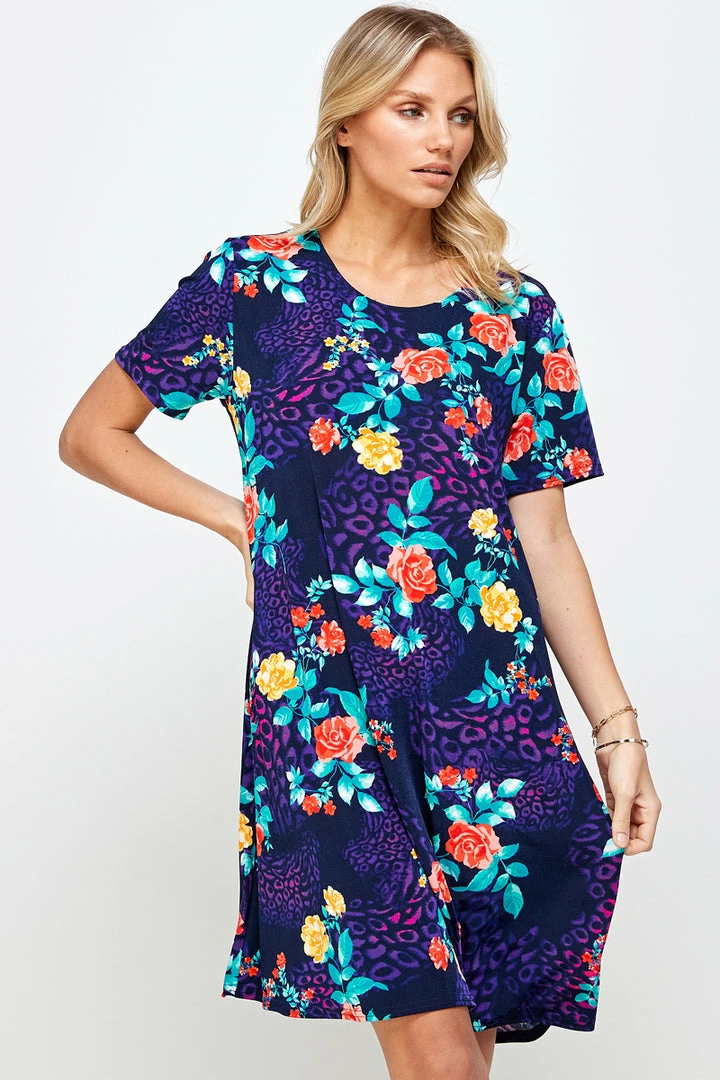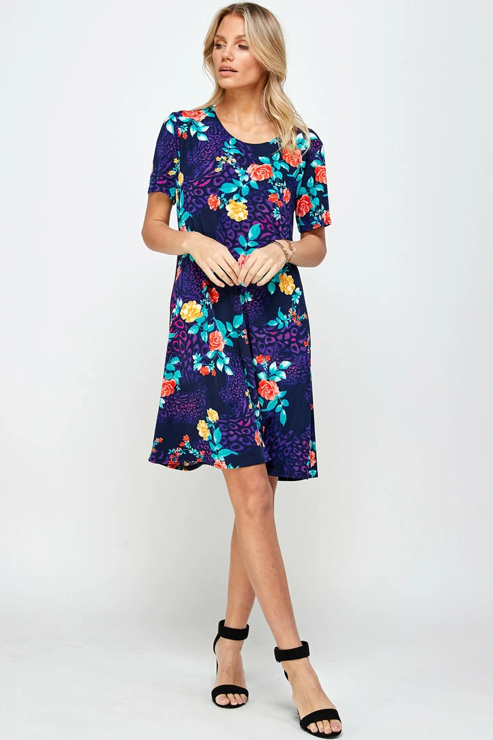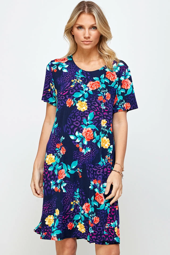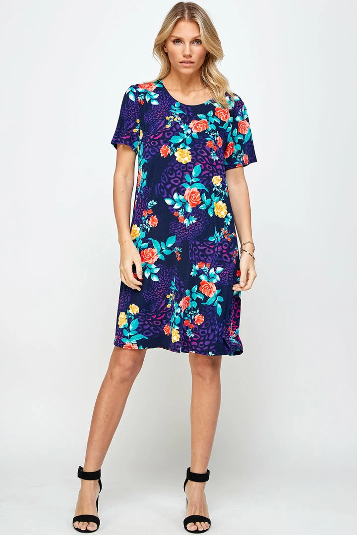 Plus Size Jostar Women’s Stretchy Missy Dress Short Sleeve Print Plus, 704BN-SXP-W301